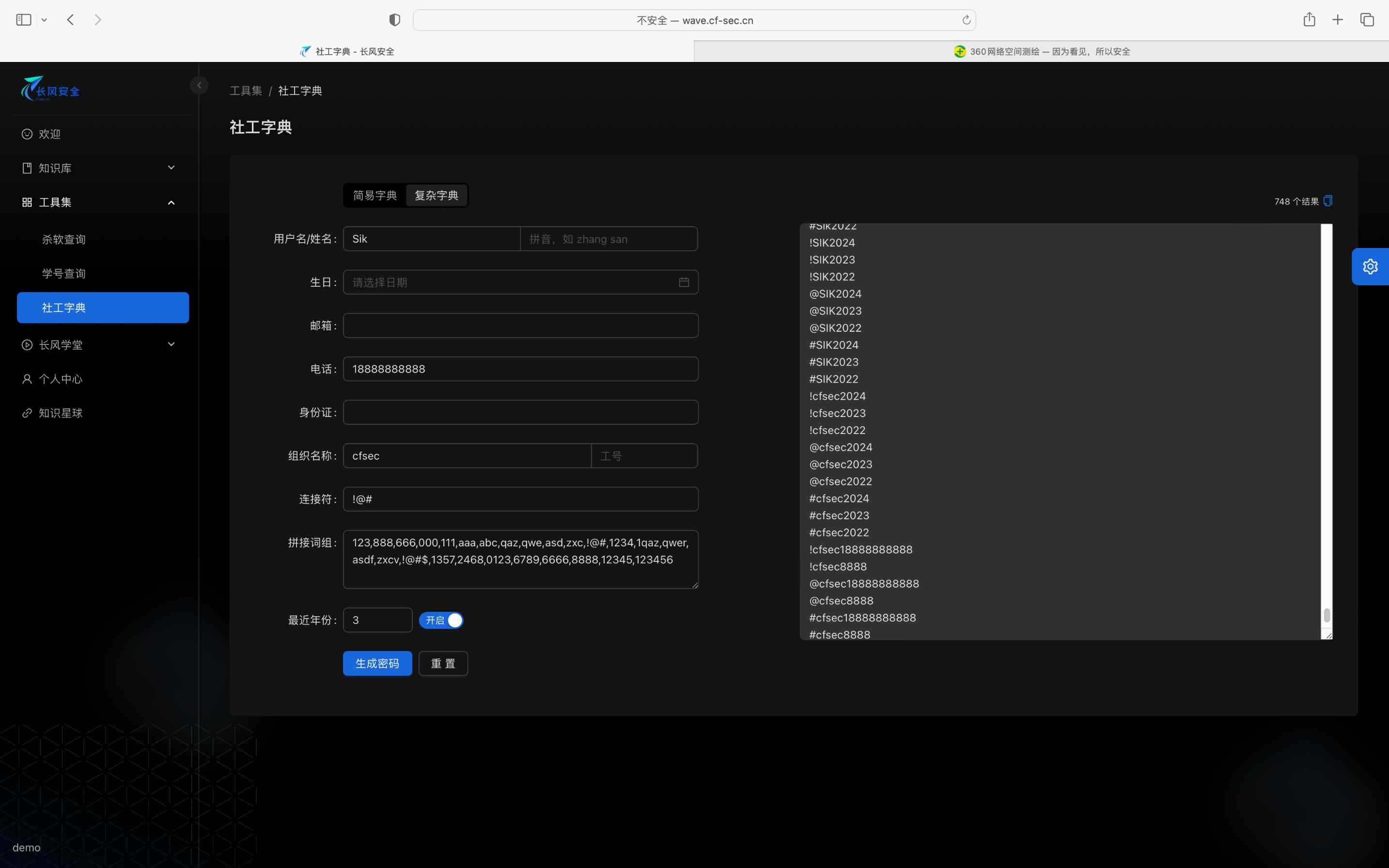 社工字典:内置112种组合方式,助力复杂口令爆破