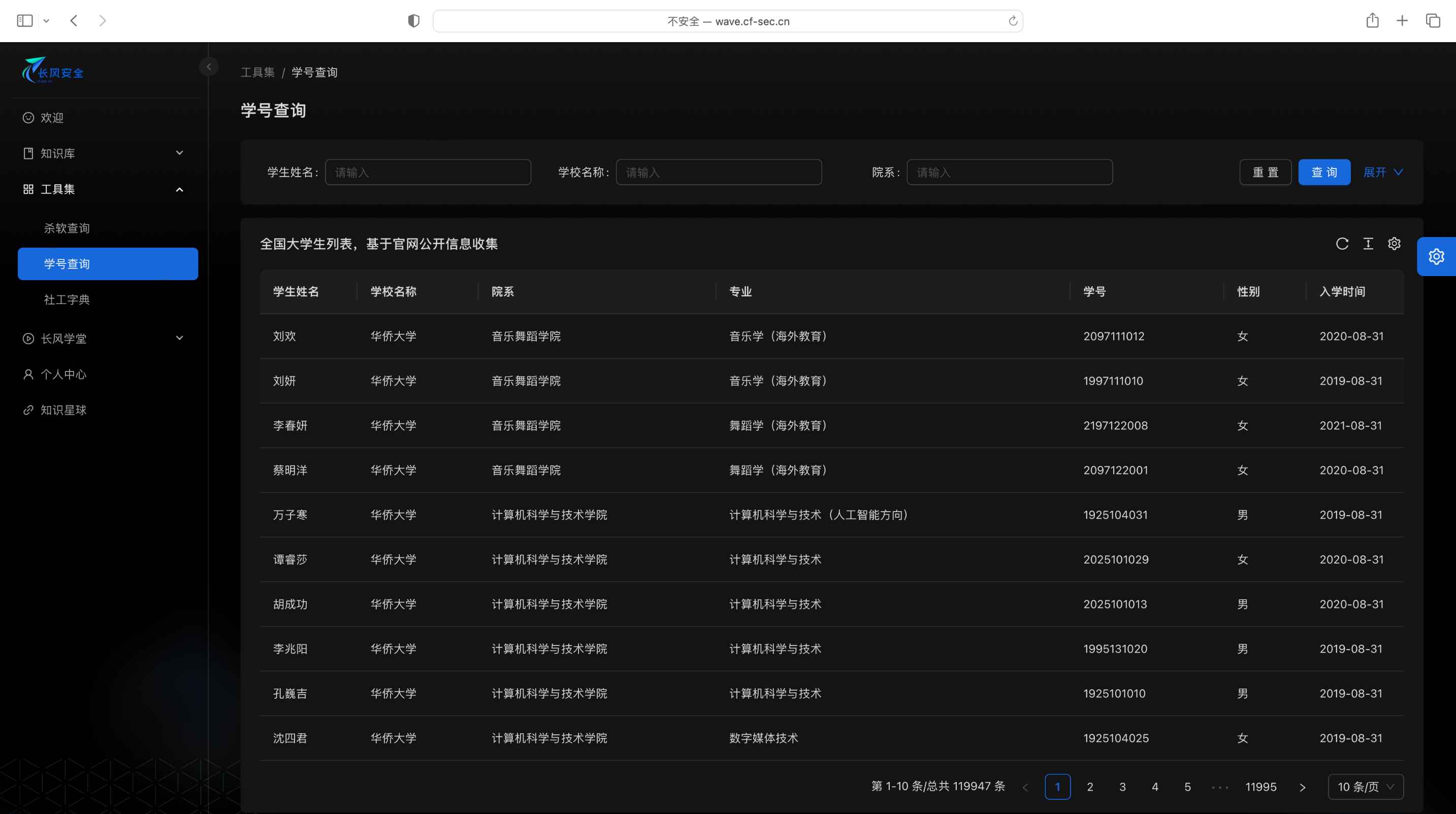 学号查询:基于官网公开信息,整理全国大学部分学生学号与姓名,助力edu SRC挖掘